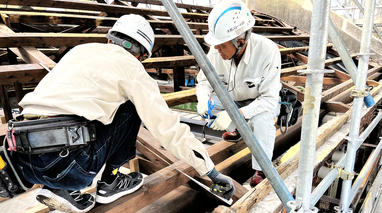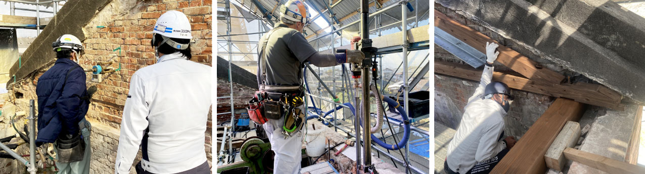 最適な施工方法で修復工事を行い、耐震工事として基礎から補強し、